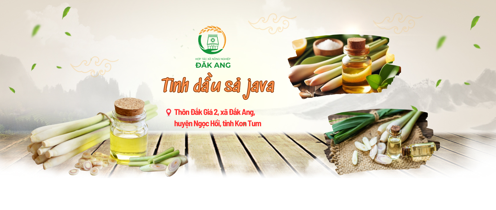Hợp Tác Xã (HTX) Nông Nghiệp Đắk Ang nằm tại thôn Đắk Giá 2, xã Đắk Ang, huyện Ngọc Hồi, tỉnh Kon Tum, là một trong những mô hình hợp tác xã nông nghiệp tiêu biểu tại khu vực Tây Nguyên. Với điều kiện khí hậu và thổ nhưỡng đặc trưng của vùng đất Kon Tum, HTX Đắk Ang tận dụng nguồn tài nguyên thiên nhiên sẵn có để sản xuất và cung cấp các sản phẩm tinh dầu thiên nhiên chất lượng cao như tinh dầu sả Java và nhiều loại tinh dầu khác.